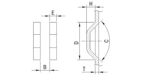 - 成形高度:H≤2T、成形寬度2H≤B≤12.8