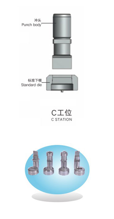 - 所有沖頭刃口均采用特種的高速工具鋼,全部經真空熱處理,硬度HRC60°-63°