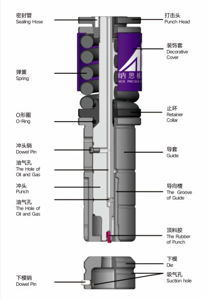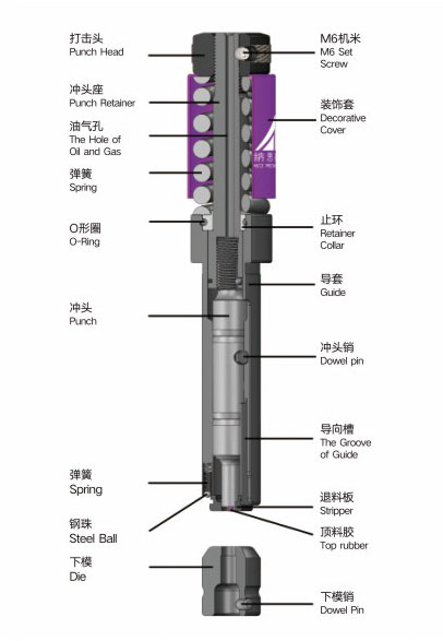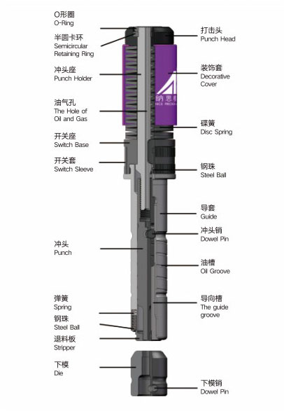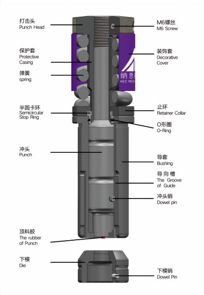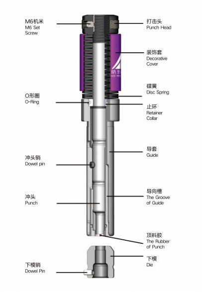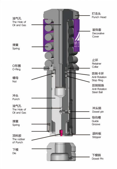 - 所有沖頭刃口均采用特種的高速工具鋼,全部經(jīng)真空熱處理,硬度HRC60°-63°