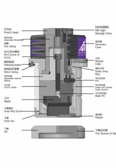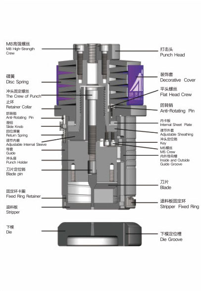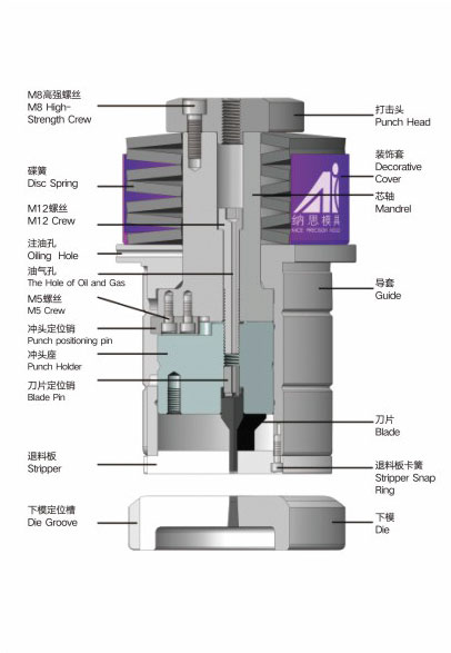 - 下模采用優(yōu)質(zhì)模具鋼,全部真空熱處理,刃口均為防帶料設(shè)計(jì),有效防止廢料反彈、跳料、上浮發(fā)生。